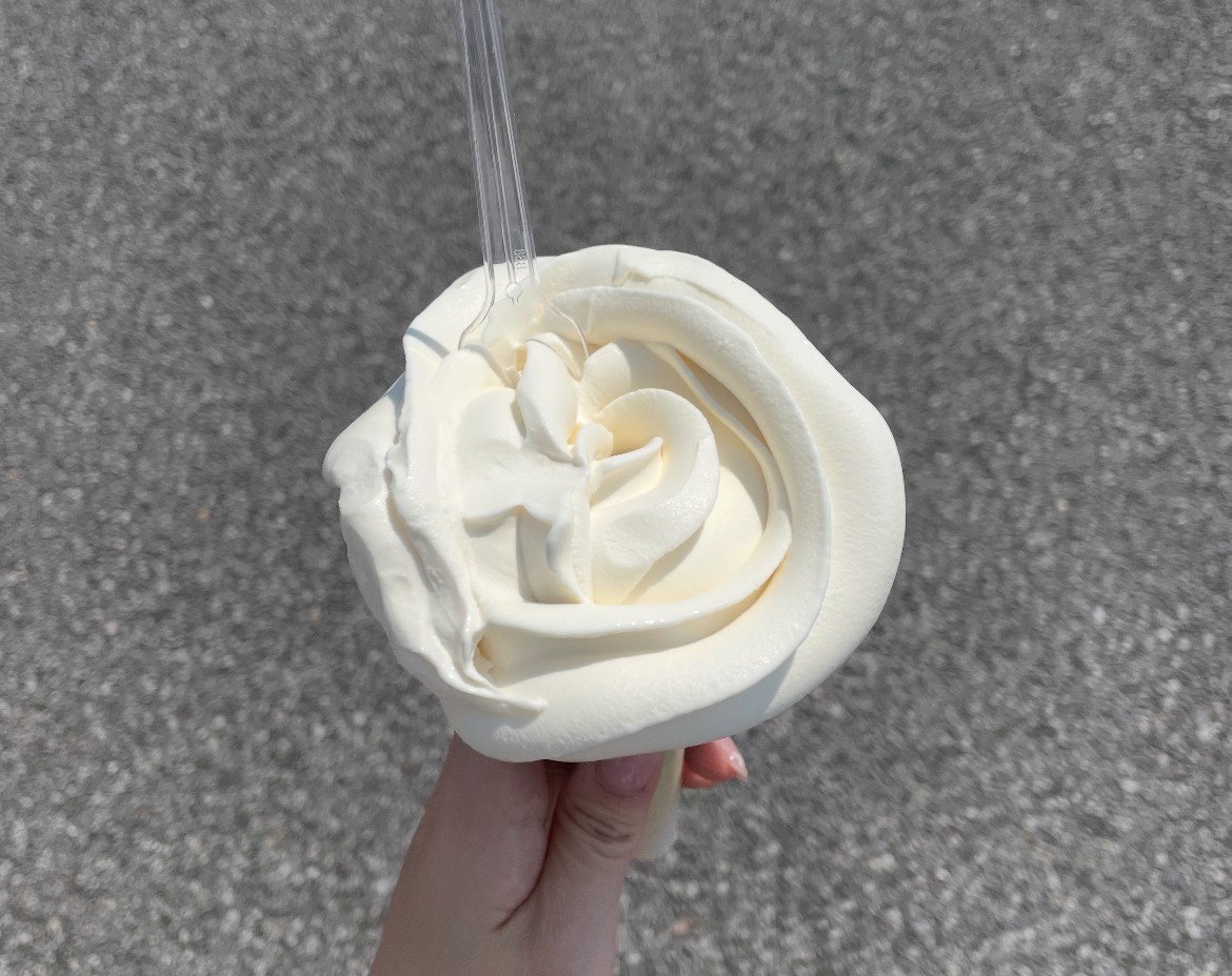 写真はその時にたまたま見つけたお花の形のソフトクリームです♪