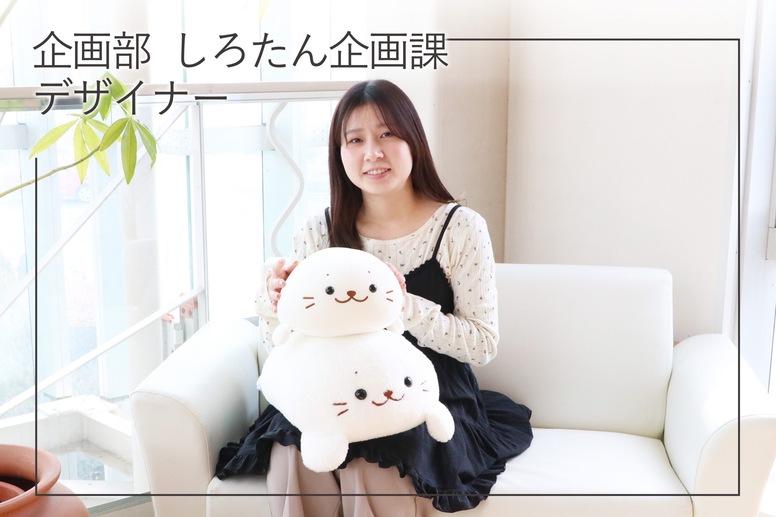 就職活動をしている時にクリエイティブヨーコに出会い、他とは違う、心に寄り添ってくれるふわふわ優しいキャラクターのしろたんがいることを知りました。調べるうちに「なごみ、いやし、はげまし、ふれあい」を大切にしていることが分かり、そんな会社で私も誰かに癒しやはげましを与えられるような商品を作りたいと思い、入社することにしました。