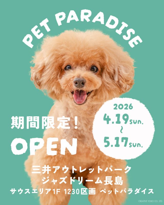 2026.4.19(日)三井アウトレットパーク ジャズドリーム長島にペットパラダイスが期間限定でNEW OPEN!🐶✨